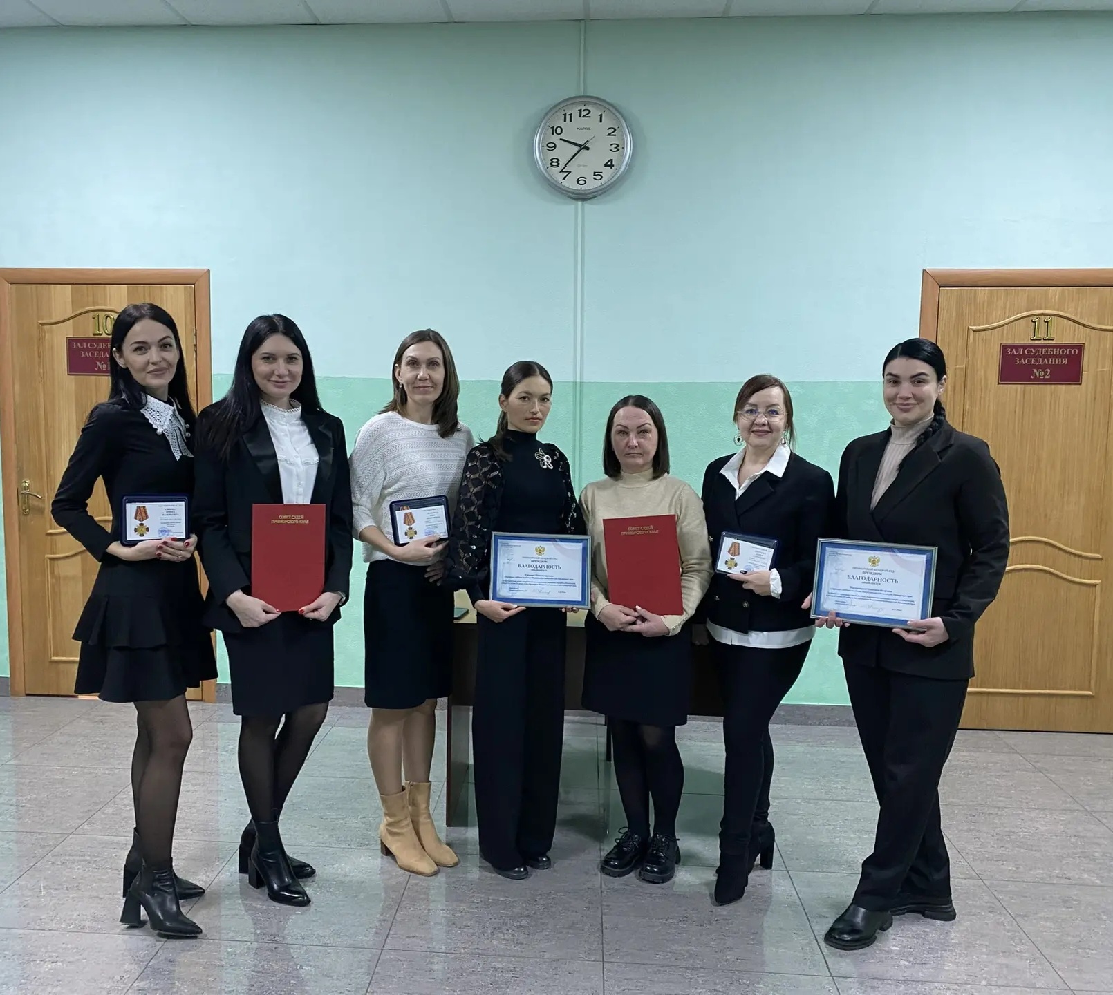 30 декабря 2025 года председатель Михайловского районного суда Приморского Казакова Дарья Александровна в торжественной обстановке выразила слова благодарности за многолетний труд в судебной системе, и вручила ведомственные награды. Знаком отличия Судебного департамента при Верховном Суде Российской Федерации «За усердие II степени» награждены: · Шаповал Инна Викторовна – помощник судьи · Сивова Ирина Валерьевна – консультант · Онучина Дарья Сергеевна – старший специалист 1 разряда · Зинченко Виталий Алексеевич – администратор суда Благодарности президиума Приморского краевого суда вручены: · Мирошниковой Екатерине Валерьевны – секретарь судебного заседания; · Кудиновой Татьяне Сергеевне – секретарь судебного заседания · Капусте Наталье Викторовне - секретарь суда
